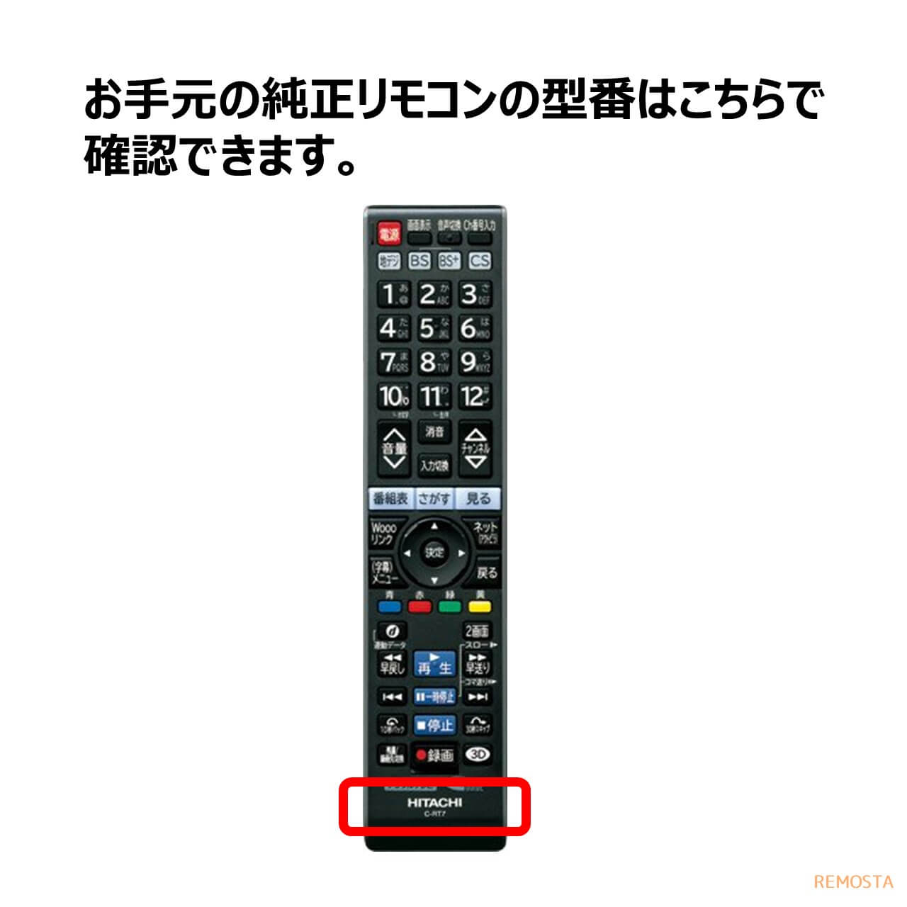 日立 Wooo テレビ リモコン 電池付き C-RT4 C-RT6 C-RT7 C-RT1 C-RS4 C-RS5 C-RS1 C-RS3 C-RT2 C-RT3 HITACHI ウー 代用リモコン REMOSTA