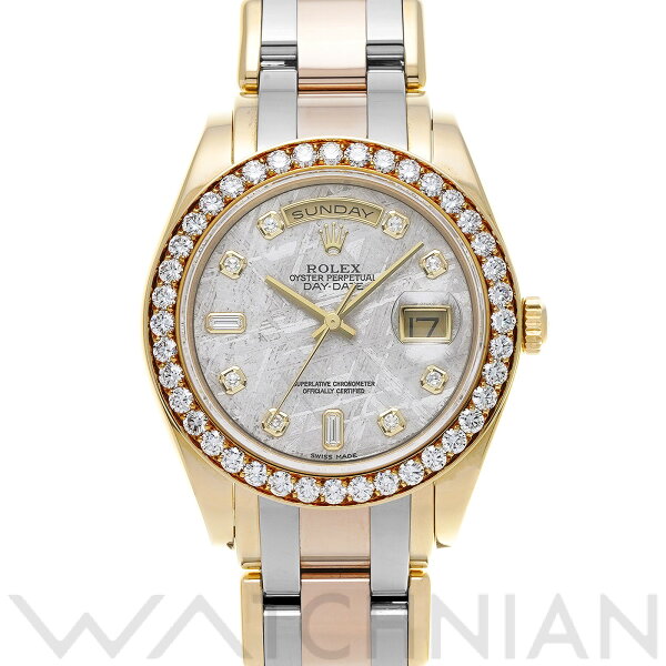 商品詳細 【管理番号】468842 【ジャンル】腕時計 /メンズ 【ブランド】ロレックス / ROLEX 【商品名】 デイデイト パールマスター トリドール 18948A W番(1994年頃製造) メテオライト/ダイヤモンド 【シリアル】W番(1994年頃製造) 【ムーブメント】自動巻き / Cal.3155 【文字盤】メテオライト/ダイヤモンド 【ケース】イエローゴールド 【風防】サファイアクリスタル風防 【ベゼル】イエローゴールド/ダイヤモンド 【ブレス】イエローゴールド/ホワイトゴールド/ピンクゴールド 【ブレス番号】72748 【状態】 中古 ランクA ケース 目立つダメージはございません ベゼル 目立つダメージはございません ベルト 僅かな小傷が見受けられます バックル 僅かな小傷が見受けられます 風防 目立つダメージはございません 【サイズ】 ケース 縦/約36mm 横/約36mm厚み/約12.2mm ラグ幅 20mm 腕周り 約18.5cm 【機能】 防水(100m) デイト表示 曜日表示 【付属品】メーカー保証書(2000年6月海外購入) 【当社保証】 1年 ランク状態について 商品の状態は、下記のランクで評価しています。