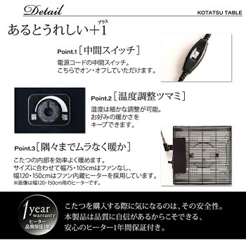 ◆こたつテーブル単品:こたつテーブル 《こたつテーブル》■75×105 cm【サイズ】幅75×奥行105×高さ40cm【商品重量】26.5kg【梱包サイズ・重量】81×118×16cm/29kg ■全サイズ共通【天板耐荷重】約20kg【材質】パーチクルボードフラッシュ板、MDF、5mm強化ガラス 仕上げ:UV塗装【カラー】グロスブラック/ラスターホワイト【ヒーター】 長方形(75×105):300W石英管ヒーター 中間スイッチ式【電源コード長さ】約3m【梱包数】1【生産国】ベトナム【備考】ヒーター部メーカー1年保証付き ※組立品 ※鏡面仕上げは天板、天板側面に施しております。
