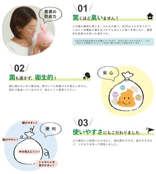 この開発で培った技術を活かして、様々な臭い問題解決のお役に立ちたいとの想いから、「驚異の防臭袋BOS (ボス)」が誕生しました。